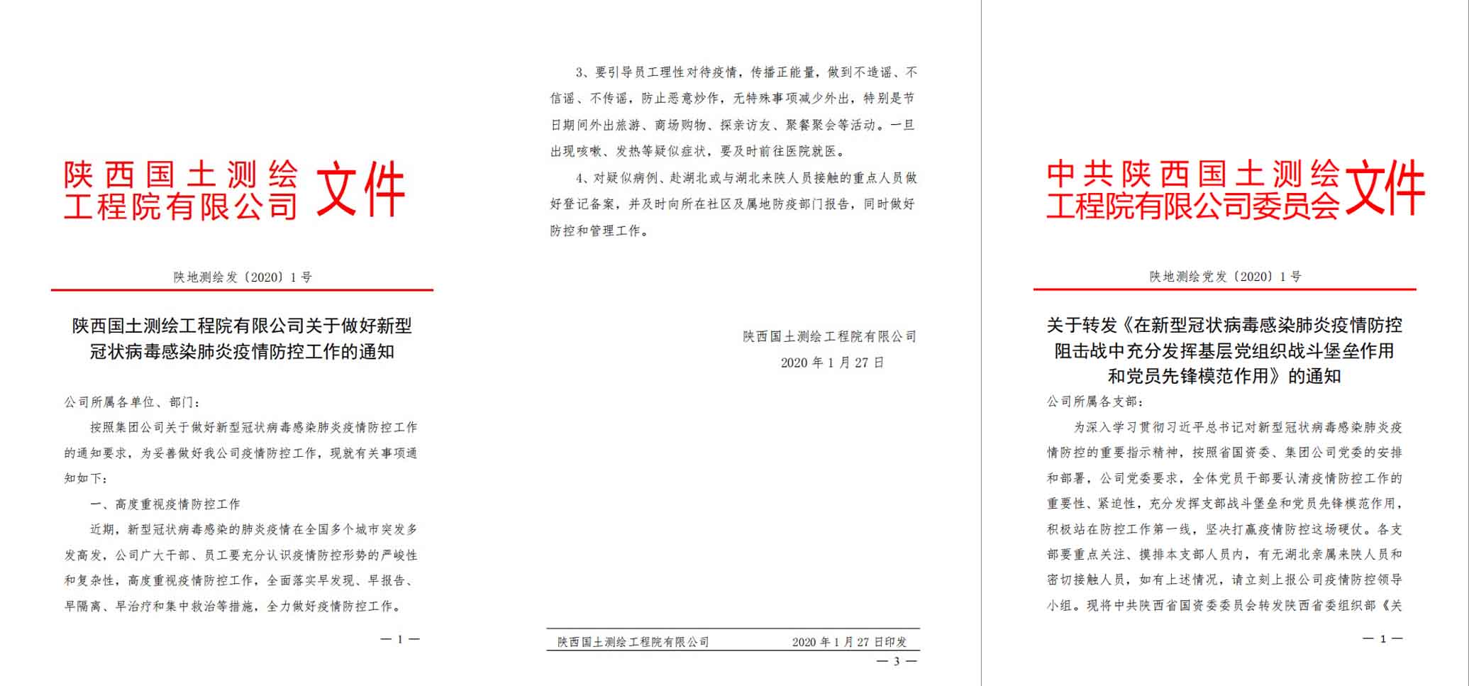 1月28日(大年初四),集團公司副總經理何淑萍召開會議研究部署集團公司大院疫情防控工作,公司副總經理崔安波和物業中心、安環部負責人參加。并及時將情況向公(gong)司(si)黨委書記、執行董事(shi)、總經理(li)張福良匯報,當(dang)天下(xia)午(wu)就印發(fa)了(le)《陜西國土(tu)測繪工(gong)程院有限(xian)公(gong)司(si)關于新型冠狀病毒感染肺(fei)炎疫(yi)情防(fang)(fang)控(kong)工(gong)作(zuo)的通知》成立公(gong)司(si)疫(yi)情防(fang)(fang)控(kong)領導小組和辦(ban)公(gong)室并對疫(yi)情防(fang)(fang)控(kong)工(gong)作(zuo)做(zuo)了(le)安(an)排部署。