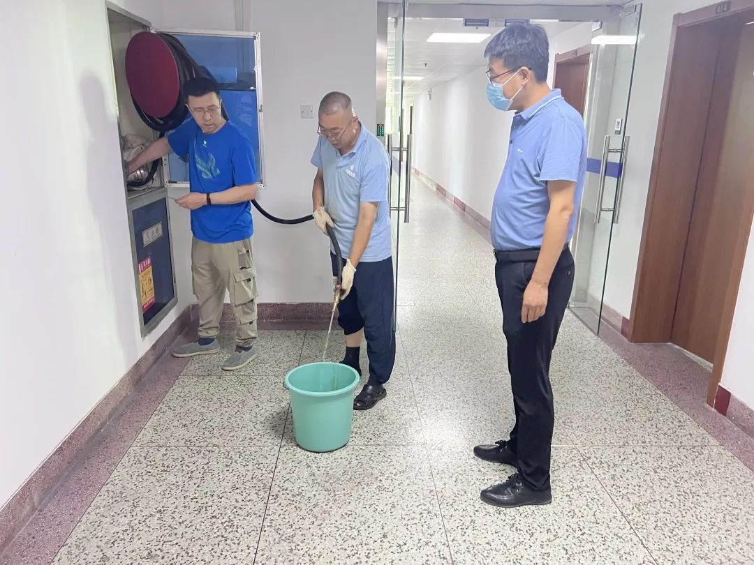 此前(qian)經安全(quan)生(sheng)產(chan)大檢查(cha)發現,公(gong)司辦公(gong)樓一樓東(dong)側(ce)安全(quan)疏散口不通,并且消防栓存在多年無水問(wen)題,有(you)嚴重(zhong)(zhong)消防安全(quan)隱患。按照公(gong)司立(li)查(cha)立(li)改(gai)要求,安環(huan)部主任立(li)即(ji)制定解決方案,頂(ding)著(zhu)著(zhu)烈日酷暑,組織人員克服重(zhong)(zhong)重(zhong)(zhong)困難,對樓頂(ding)樓底水箱漏水點等多處(chu)問(wen)題進(jin)行整(zheng)改(gai)維修,最(zui)終解決了隱患。