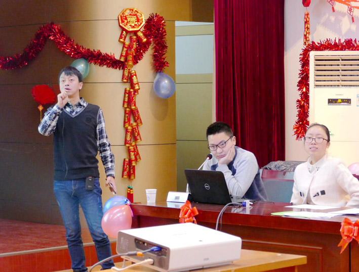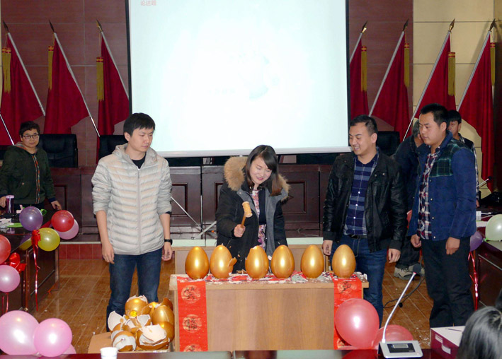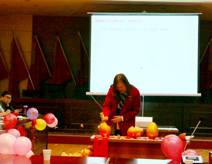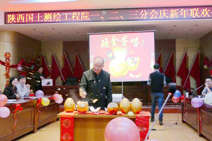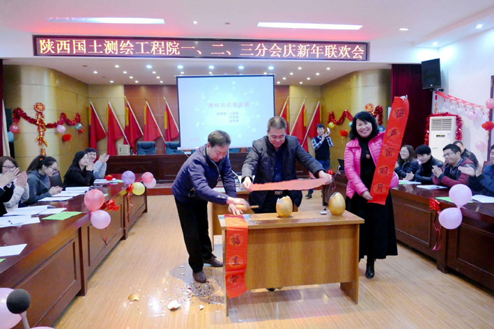 23日上午,五彩繽紛的院三樓會議室,座滿了院內外業的生產員工,這里正在進行著迎新年聯歡會。院長黨委書記張福良、黨委副書記、紀委書記、工會主席李世平、副院長董乾坤、副院長童雅妮、副院長總工程師王小龍參加聯歡會。聯歡會的主題是知識競賽。競賽活動以從金蛋里抽出張福良書寫的“雞聲窗前月,人笑福里春”春聯的歡樂氣氛中拉開帷幕。緊接著會場兩旁來自生產崗位的16支代表隊和周邊觀眾靜靜的盯著投影幕布。在王小龍的主持下,一道道知識競賽問答題飛入幕布,各代表隊爭先搶答。每答對一道題,就會現場獲得一份精美的獎品。答題內容涉及天文地理、時事政治、民風民俗、測繪知識等儲多領域。答題形式采取槍答、點答、擊鼓傳花等多種形式,副院長童雅妮和主任工程師羅顯元專司點評,現場氣氛緊張、熱烈,現場觀眾參與感強。選手們的精準答題不斷贏得觀眾陣陣掌聲。
